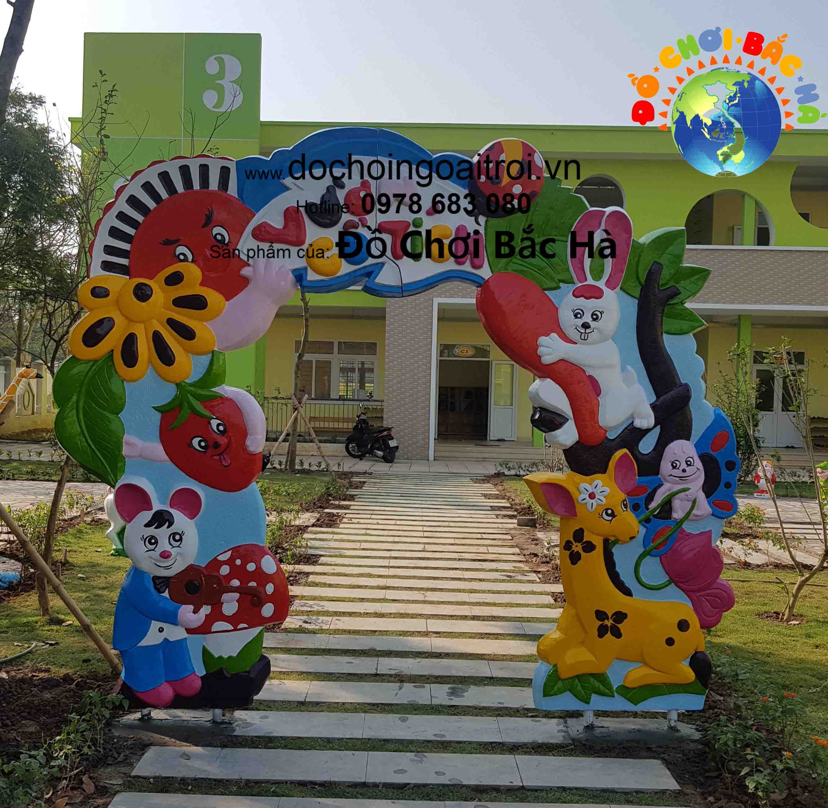 - Tạo cảnh quan cho trường mầm non, khu dân cư, khu vui chơi,…:Vườn cổ tích mầm non không chỉ có các tượng nhân vận cổ tích mà còn có thảm cỏ xanh, cây hoa màu sắc, các đồ chơi,… tất cả sẽ tạo điểm nhấn cho quang cảnh xung quanh cũng như thu hút được trẻ hơn.