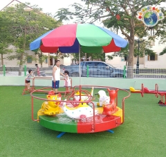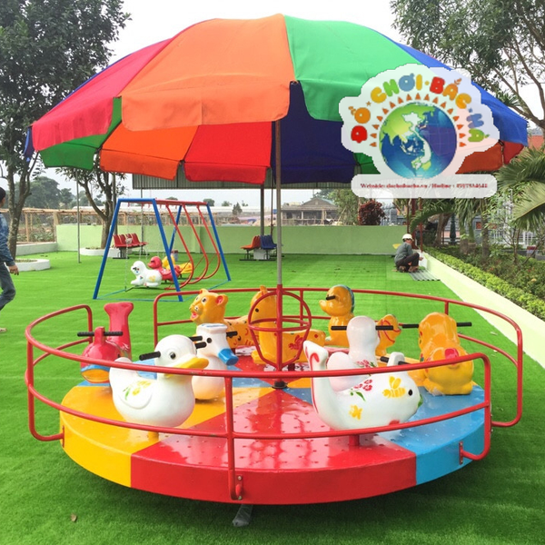 Chất liệu: Khung thép sơn tĩnh điện, con giống bằng nhựa composite. Chuyển động quay tự hành bằng hệ thống trục bi chuyên dụng. Đảm bảo an toàn, chắc chắn cho trẻ khi chơi.