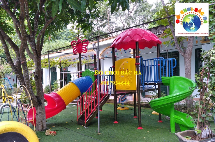 Cung cấp, lắp đặt cầu trượt liên hoàn 2 khối cho trường mầm non tư thục ở bắc cường - lào cai